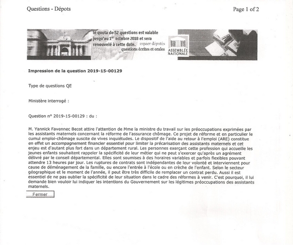Nos députés concernant notre préoccupation vis à vis de la réforme du chômage
