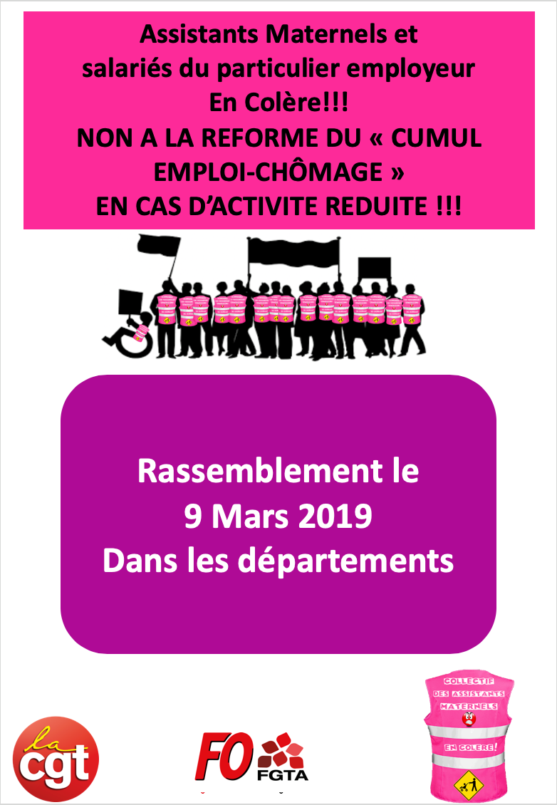 Le 9 mars prochain une deuxième mobilisation aura lieu dans chaque département contre la réforme cumul emploi-chômage.