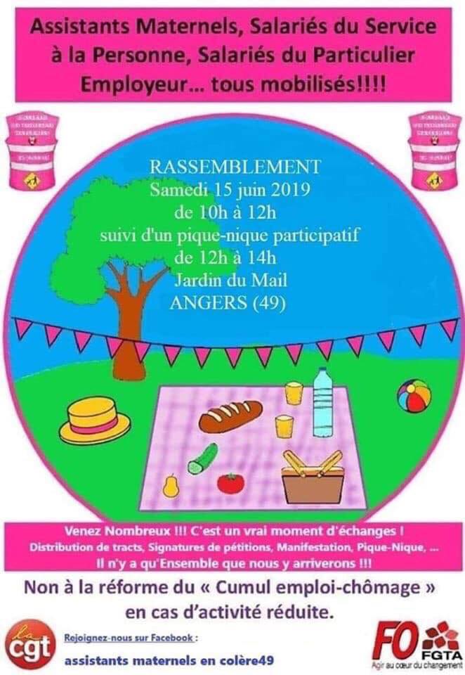 N'ayant pas de collègues à pouvoir se libérer le samedi 29 juin pour m'accompagner à Paris et participer aux états généraux du collectif des assistants maternels en colère et des syndicats CGT et FO je m'y rendrais avec les représentantes du collectif du Maine et Loire.