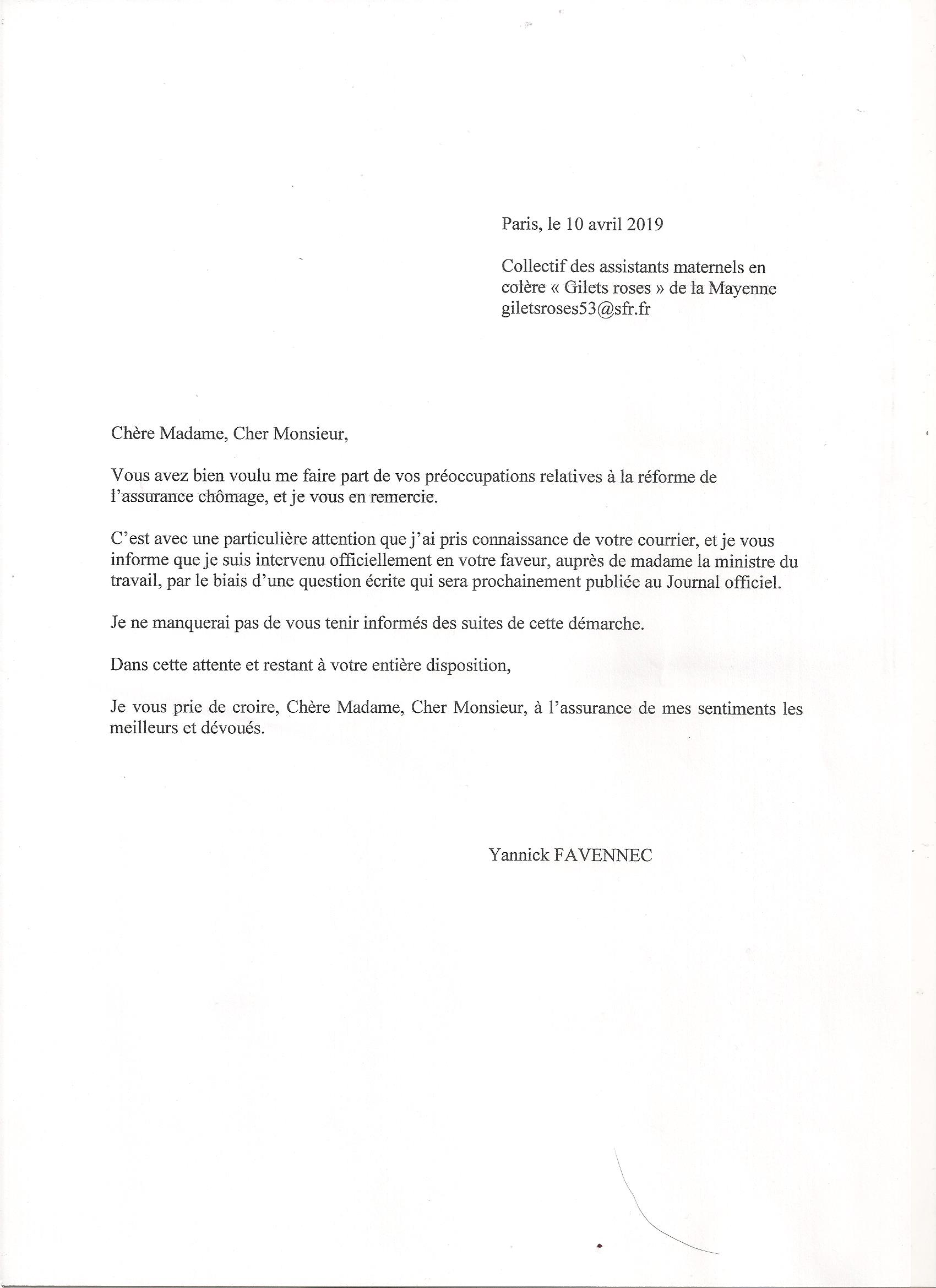 Nos députés concernant notre préoccupation vis à vis de la réforme du chômage