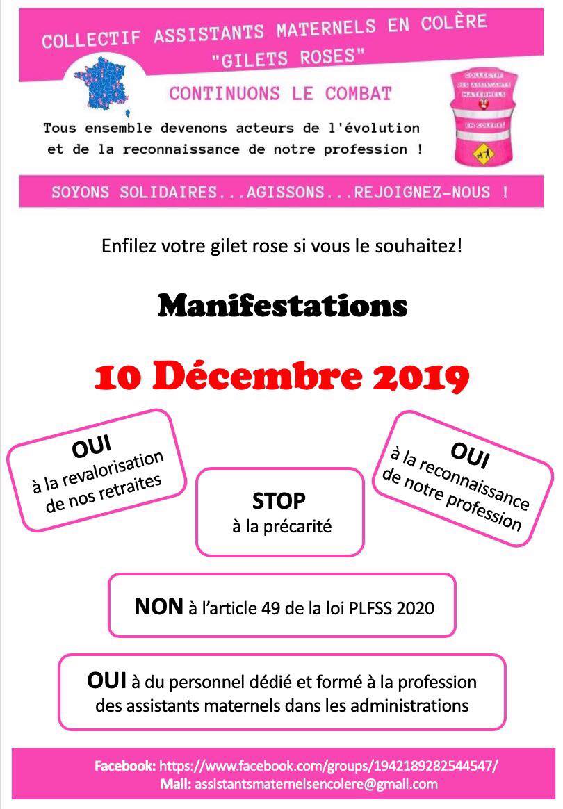 Cette pétition s'adresse à tous les assistants (es) Maternels(les) qui ne peuvent pas participer physiquement à la mobilisation de la grève générale du 10 Décembre et aux futurs reconductions de cette contestation mais qui souhaitent soutenir ce mouvement... ASSISTANTS(ES) MATERNELS (LES) MEMBRES OU NON DU COLLECTIF DES ASSISTANTS MATERNELS EN COLÈRE "GILETS ROSES" UNISSONS NOUS !